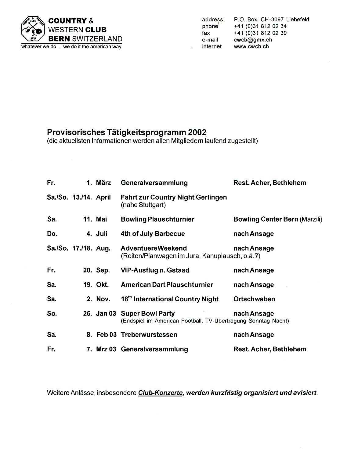 | Präsident: Tony J. Baumgartner Vize-Präsident: Reto Winkler Sekretär: Pierre A. Blaser Kassier: André Weibel Beisitzer: Chrigi Stebler Beisitzer: Uwe Grampe Beisitzer: Cornelia Brun | |||||